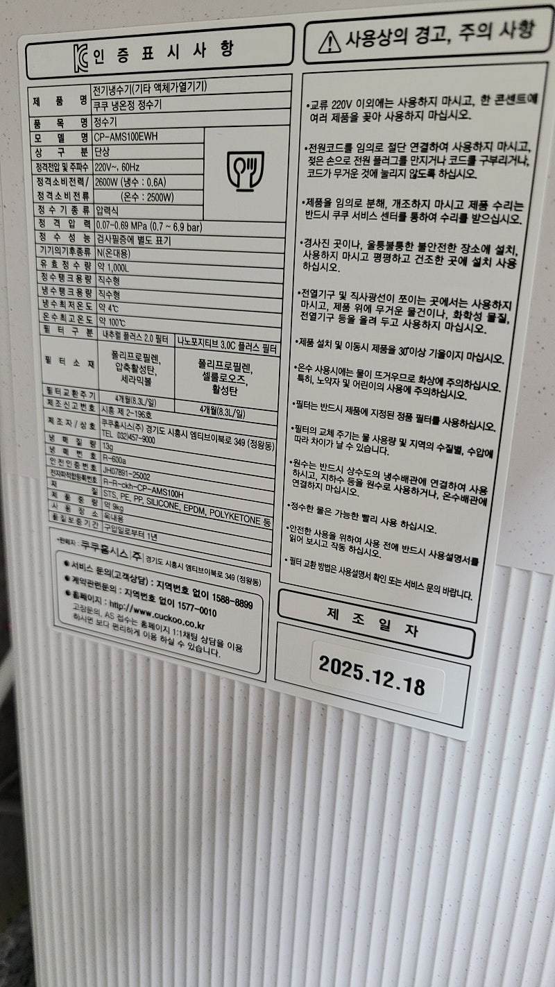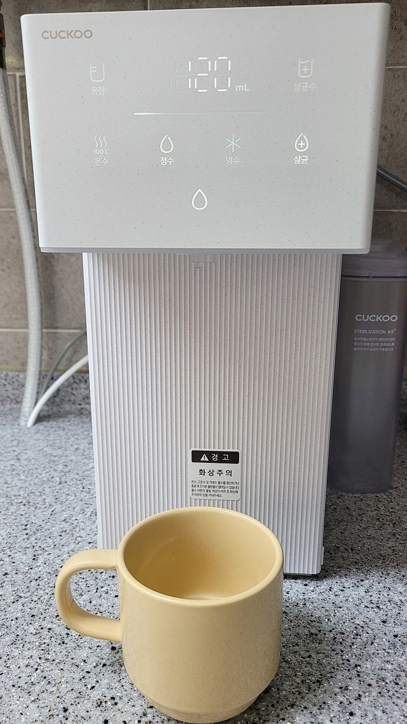 주방 공간을 효율적으로 사용하기 위해 공간 차지를 가장 적게 하는 모델 위주로 찾아보았고, 쿠쿠의 경우 코크살균세척기능으로 안심하고 물을 마실 수 있다는 게 마음에 들었습니다. 또한 온수 기능 덕분에 커피포트를 놓지 않아도 되어서 너무 좋습니다.