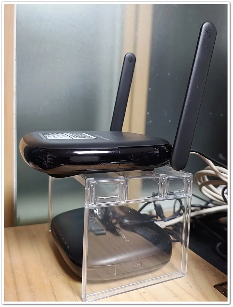 다이소에서 사두었던 아크릴 거치대가 모뎀과 공유기를 놓기에 딱이네요^^