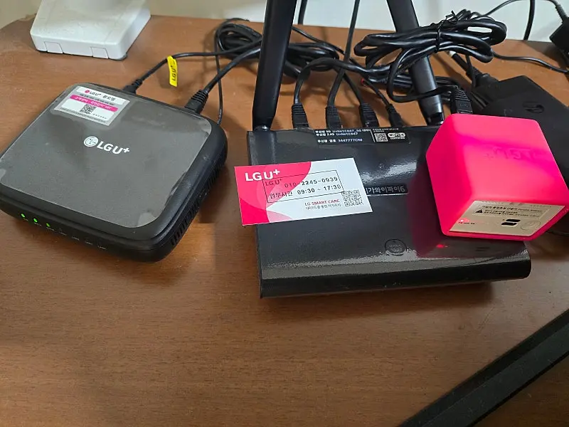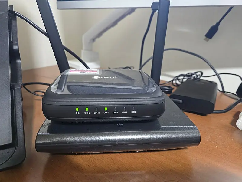 <설치 완료된 최신형 WiFi6 공유기와 모뎀>
