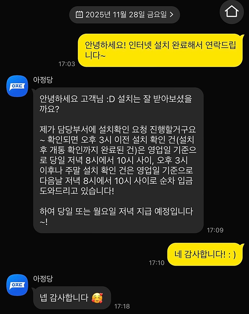 중랑구 SKT 인터넷가입 광랜E 패밀리결합(와이파이 공유기) 현금지원 내돈내산 아정당 후기