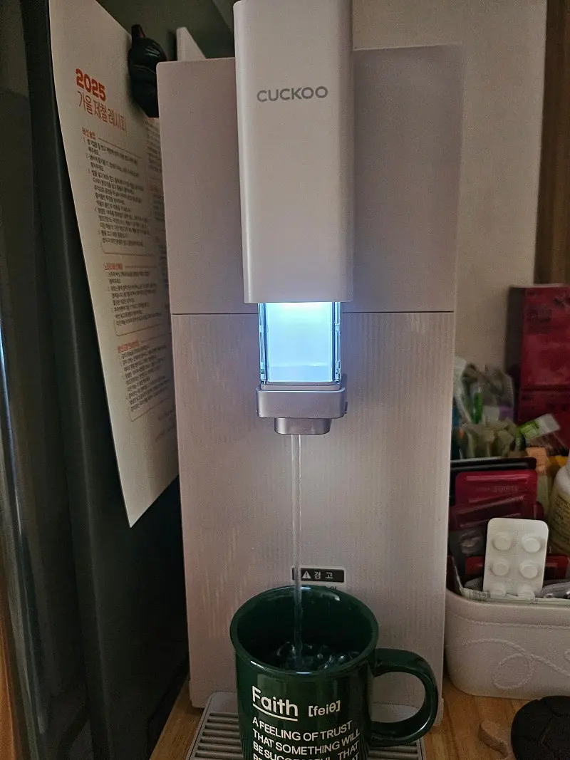 정수기 자체가 친절합니다. 뜨거운 물 나올때 조심하라고 멘트도 계속 나와요. ㅎㅁㅎ