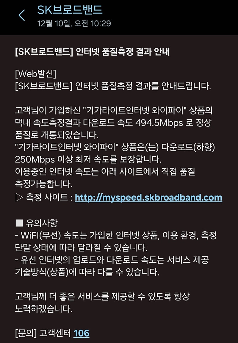 설치 기사님이 방문해 인터넷 설치, 와이파이 설정 등을 해주며 연결 테스트까지 완료
