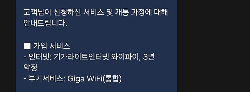 전화로 계약을 완료한 후 설치 일정 및 설치사 방문 시간을 정했고