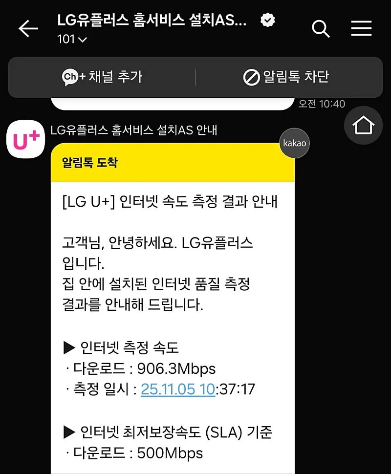 신청 후 2025년 11월 5일에 LG U+ 기사님이 방문하셨습니다. 제가 살고 있는 건물이 다소 오래되어 회선이 복잡한 편이었는데, 기사님께서는 매우 친절하고 전문적으로 대응해 주셨습니다. 복잡한 회선 문제를 신속하게 해결하고 깔끔하게 인터넷 설치를 진행해 주셨습니다. 설치가 완료된 후에는 바로 속도 측정까지 진행하여 저에게 직접 보여주시며 확인시켜 주셨습니다. 이러한 투명하고 신뢰할 수 있는 설치 과정에 매우 만족했습니다.