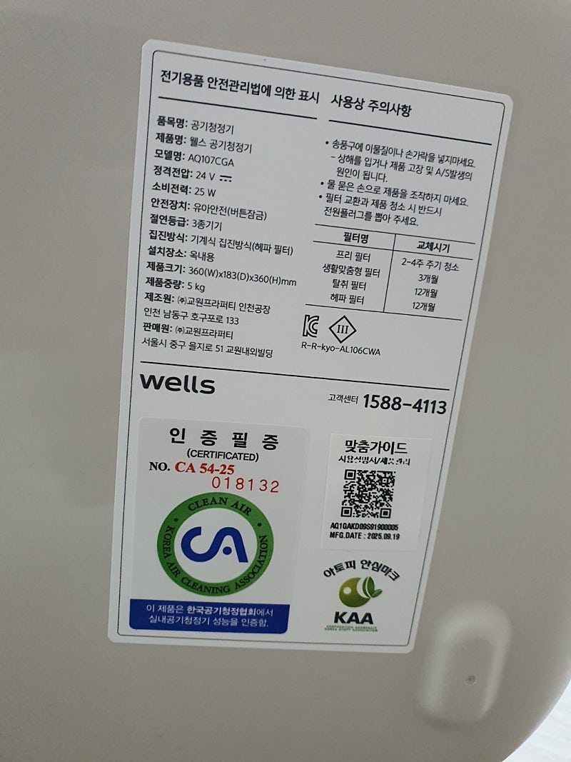 * 렌탈 상품 : 교원웰스 미니맥스 공기청정기