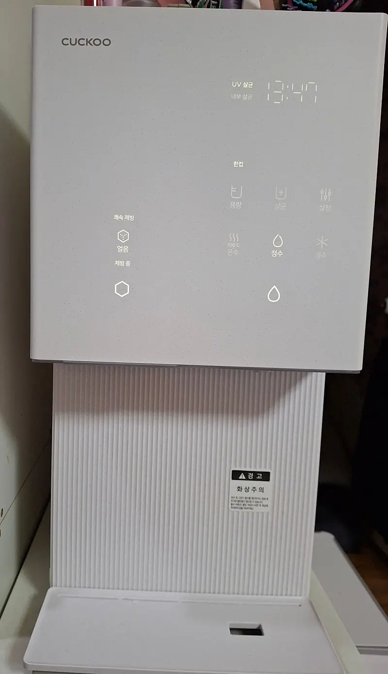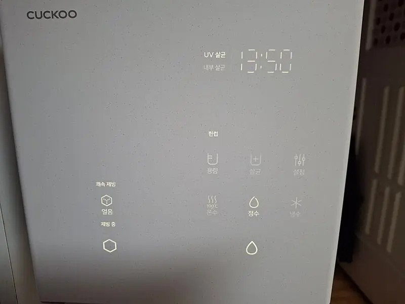 기존에 저수조형 정수기를 썼는데 아무래도 고여있는 물이라서 위생 걱정이되서 UV살균, 내부살균이 있는 쿠쿠 제로 100 슬림 얼음 정수기로 바꿔보니 좋네요