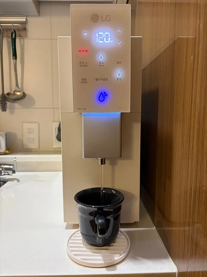 청호 나이스 정수기와 LG 퓨리케어 정수기와 비교하다가 깔끔하고 슬림한 디자인과 기능이 마음에 들어서 LG 정수기를 선택을 했고 가격도 카드 할인과 결합하여 다른 곳보다 싼 가격에 설치할 수 있었습니다. 핸드폰과 결합하여 사용할 수 있어서 편리합니다.