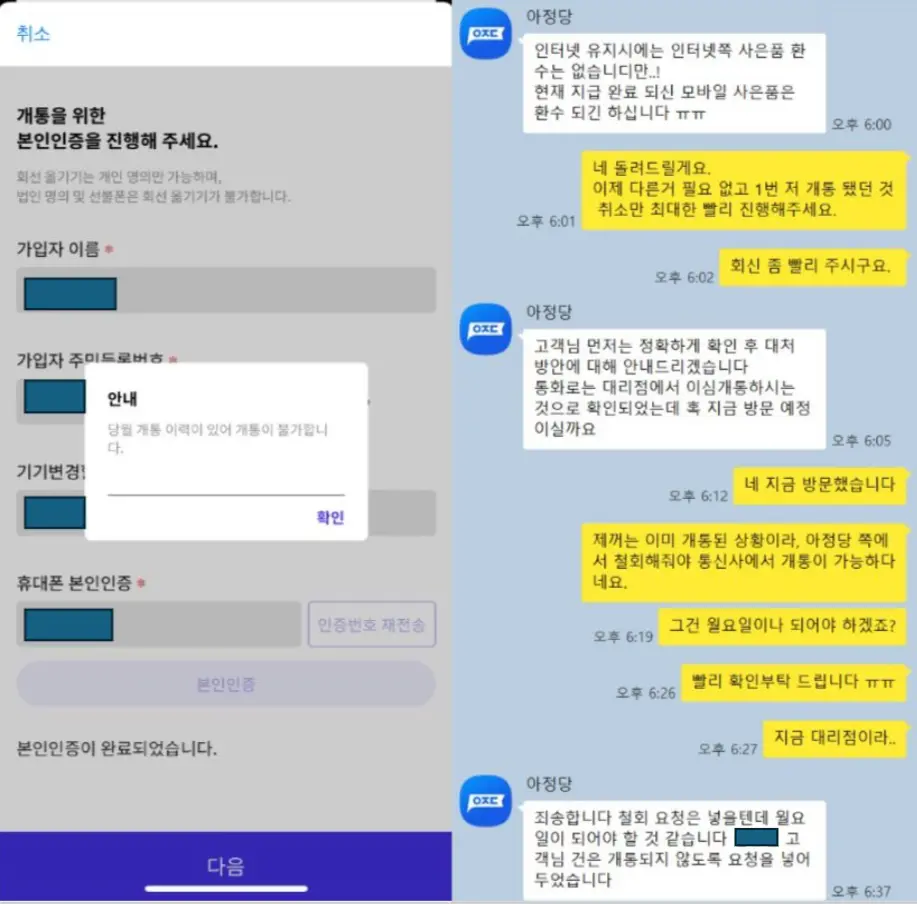 아정당을 통한 인터넷 및 번호이동 후기와 개선 제안