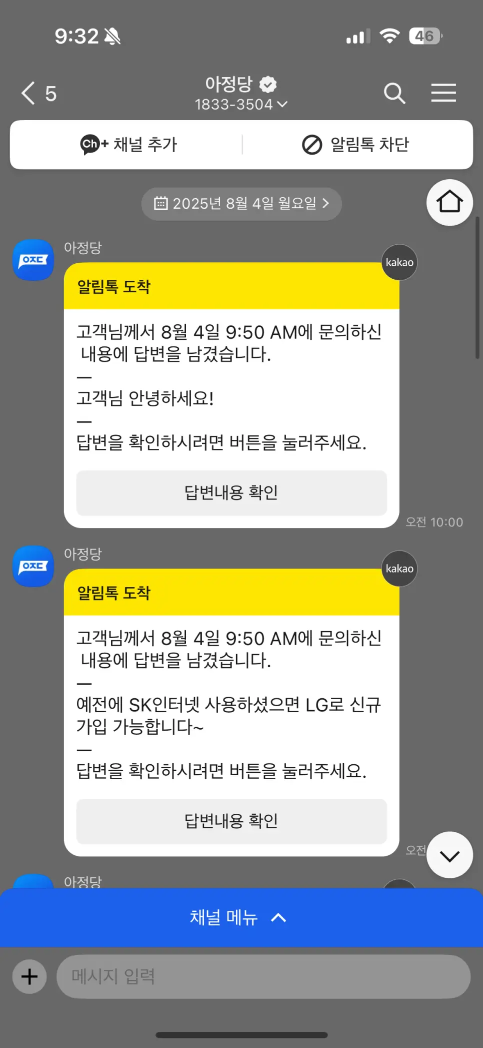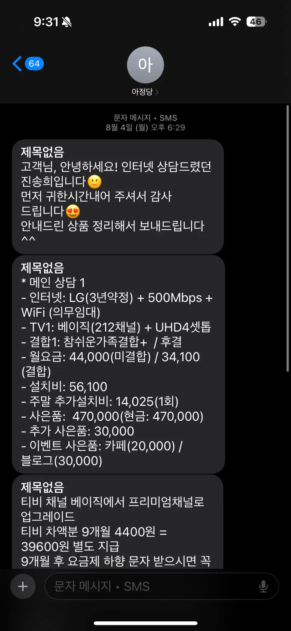 결과도 만족이라 앞으로!!!!!! 주변에서 인터넷이나 TV 설치 물어보면 자신 있게 아정당을 추천할 수 있을 것 같습니다.