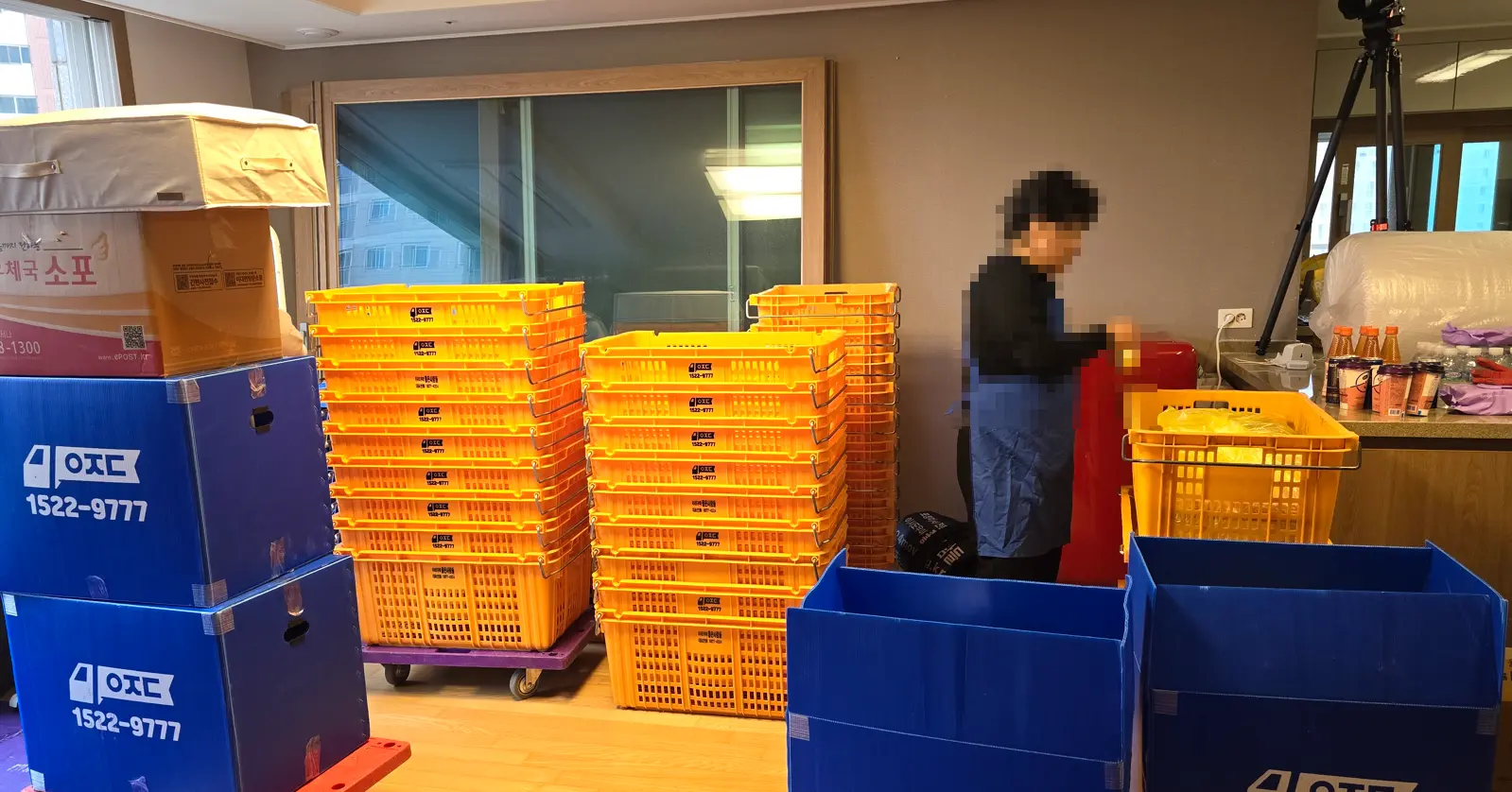 마찬가지로 아침 일찍 했어요~ 팀장? 한분이랑 청년 두명, 주방아주머니 한분이 오셨는데 순식간에 짐을 옮겨주셨어요~