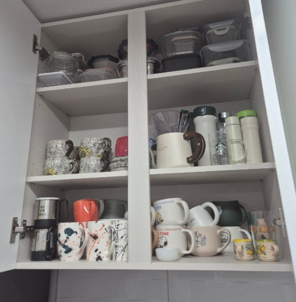 화장대의 물건, 냉장고 안, 주방 수납함 안쪽, 베란다의 짐, 거실에 세팅된 물건, 남편 서재 물건 모두 적절한 위치에 예쁘게 정리해주셔서 정말 감사드려요.