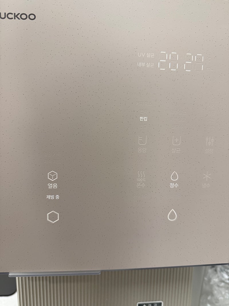 얼음 용량도 중요하다고 주변에서 말하지만 기계가 너무 크면 공간을 많이 잡아먹게되어서 비교하고 비교하다가 쿠쿠로 선택! 얼음 용량도 적지않구요 조작 버튼 알림 소리도 조절가능 좋구요