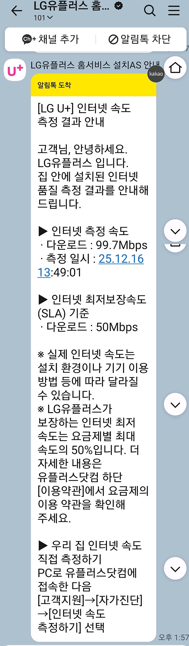 마지막으로 설치 완료 후 인터넷 속도 측정까지 해 주셔서 안정적으로 개통을 마칠 수 있었습니다.