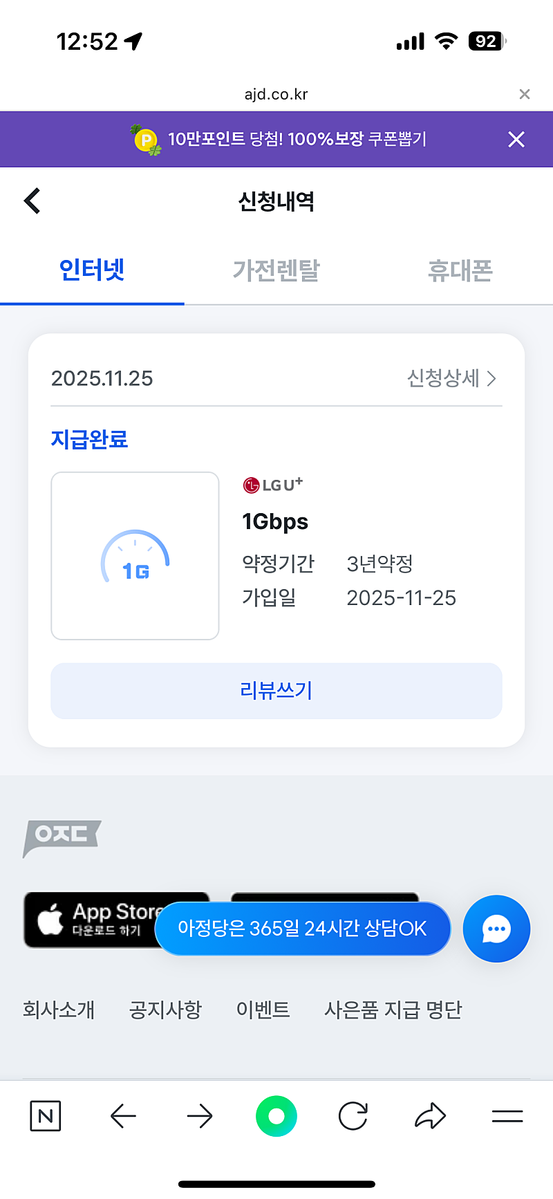 3. SK KT LG 인터넷가입사은품많이주는곳 아정당 내돈내산 후기(3줄이상)