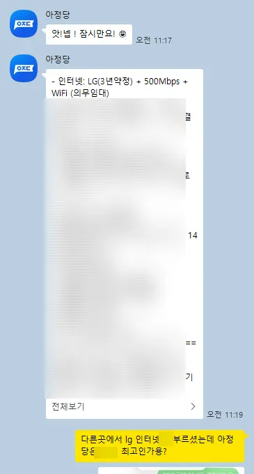일단 아정당 이용하기 전 , 기존에 쓰던 통신업체에서 약정이 끝나 현금지원해줄테니 옮기겠냐 라는 연락이 와 문득 최대지원해준다는 아정당의 견적이 궁금하더라고요! 그래서 바로 연락해본 아정당