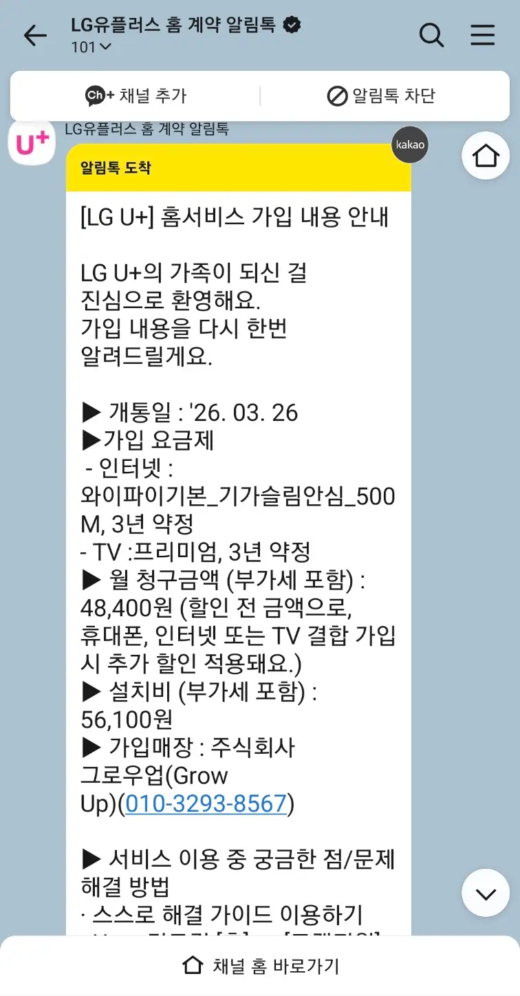 안심하고 인터넷 개통하여 사용할수 있어 다행이고 앞으로도 개인정보 불안하지 않고 이용할수 있게 힘써 주시길 바랍니다.