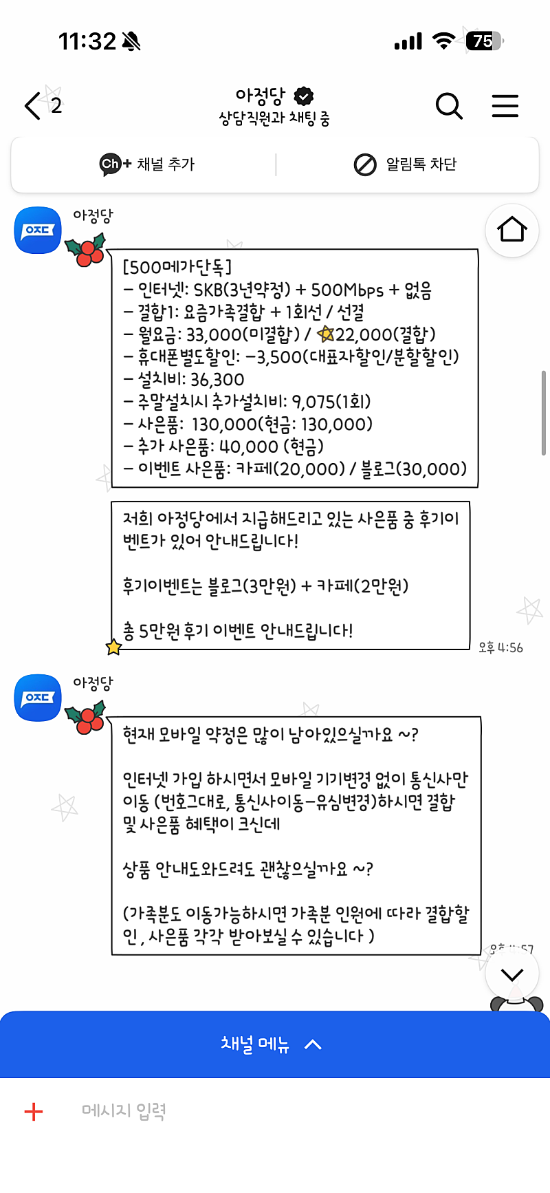 인터넷을 가입하면 요금할인도 같이 되니까 좋더라구요.