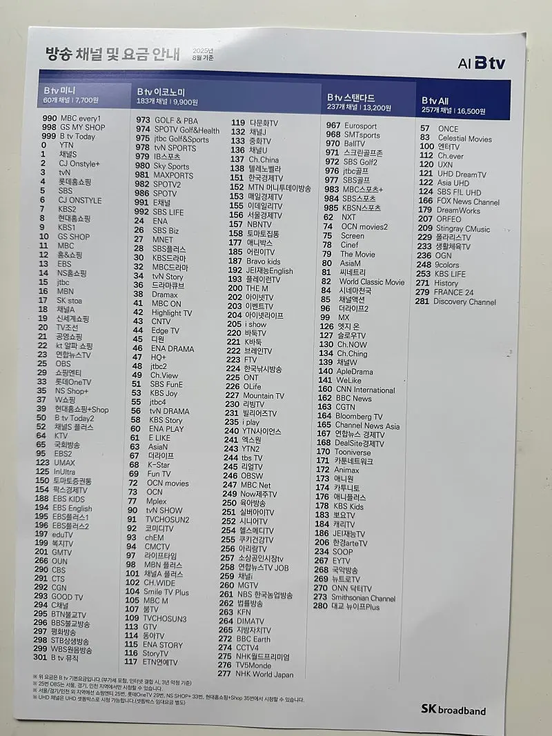 * 요금 상품 : SK텔레콤 비티비 / 스마트3셋탑 / GIGA WIFI