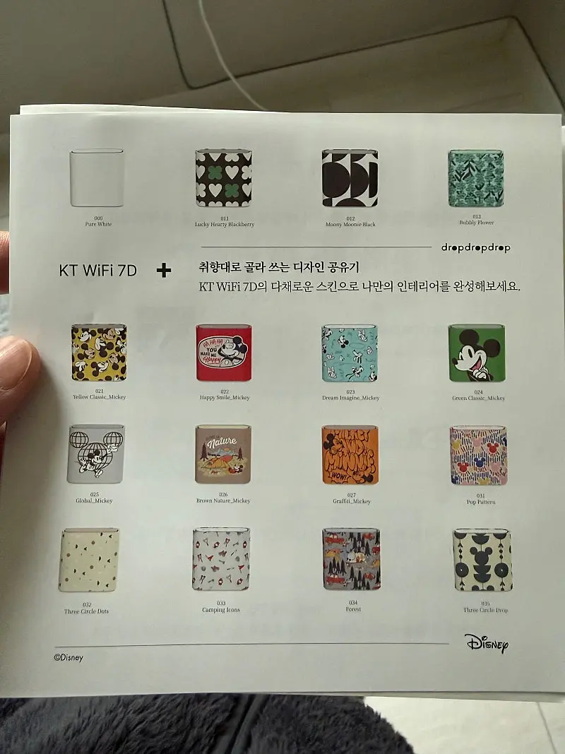 (인터넷 공유기 사진은 와이파이 비번이 보여서 종이 사진으로 대신 올렸습니다 디자인도 이쁘고 작고 커스텀도 가능하다해서 너무 마음에 들었습니다.)