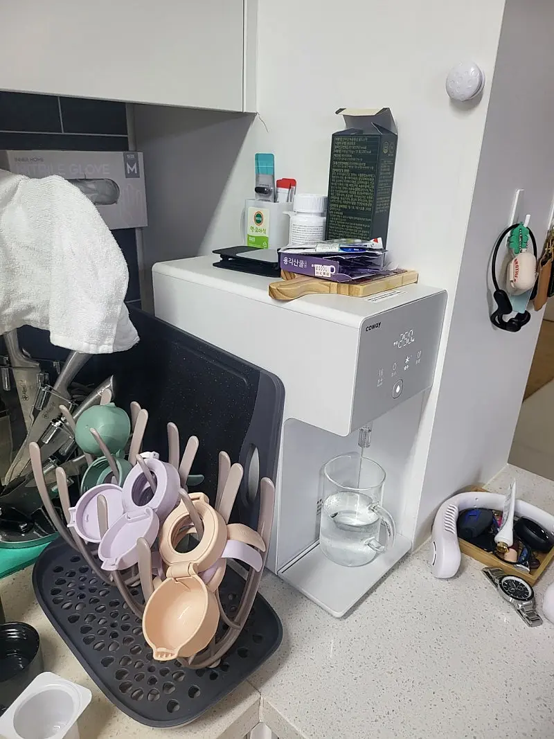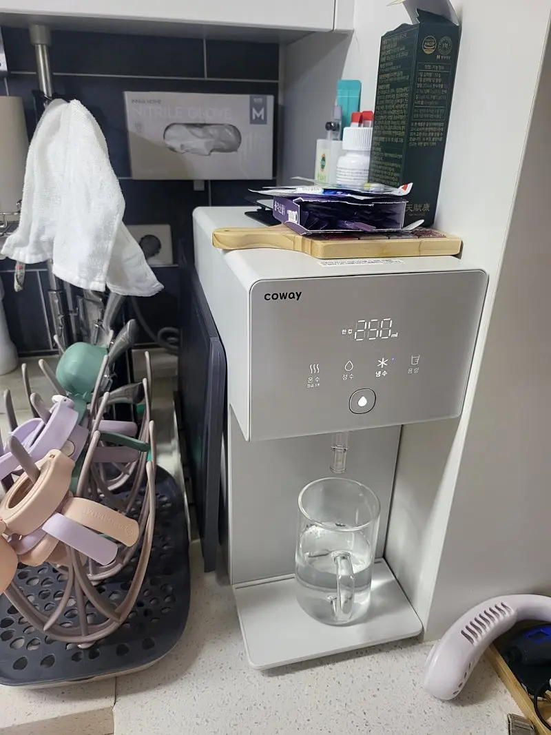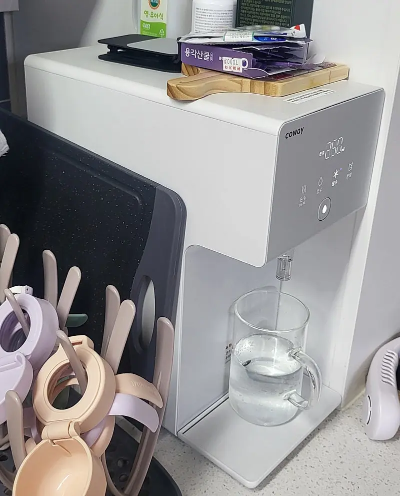 코웨이가 정수기 대표 회사로 알고 있고 사후 관리가 정말 잘 되어있다고 알고 있기 때문에 다른 저렴한 모델들 다 제치고 코웨이를 선택했어요. 아무래도 신혼집이다보니 주방 디자인을 해치지 않는게 가장 중요했는데 코웨이가 가장 심플하고 깔끔해서 주방 인테리어에 잘 스며들어서 디자인 측면에서 만족도가 제일 높아요!