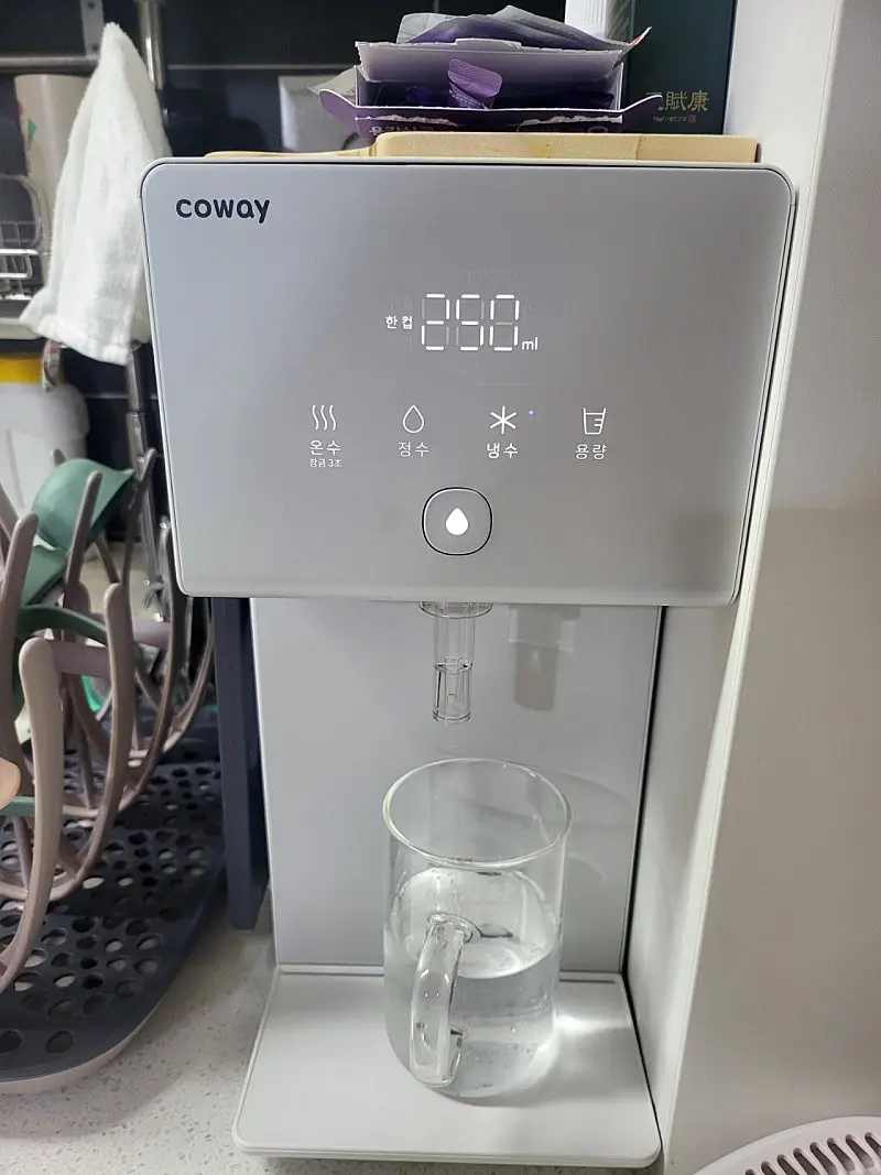 저는 얼음기능까지는 필요 없었고 컵라면 같은거 먹거나 겨울에 따뜻한 차 마시려면 뜨거운 물이 필요해서 냉온정까지 했어요.