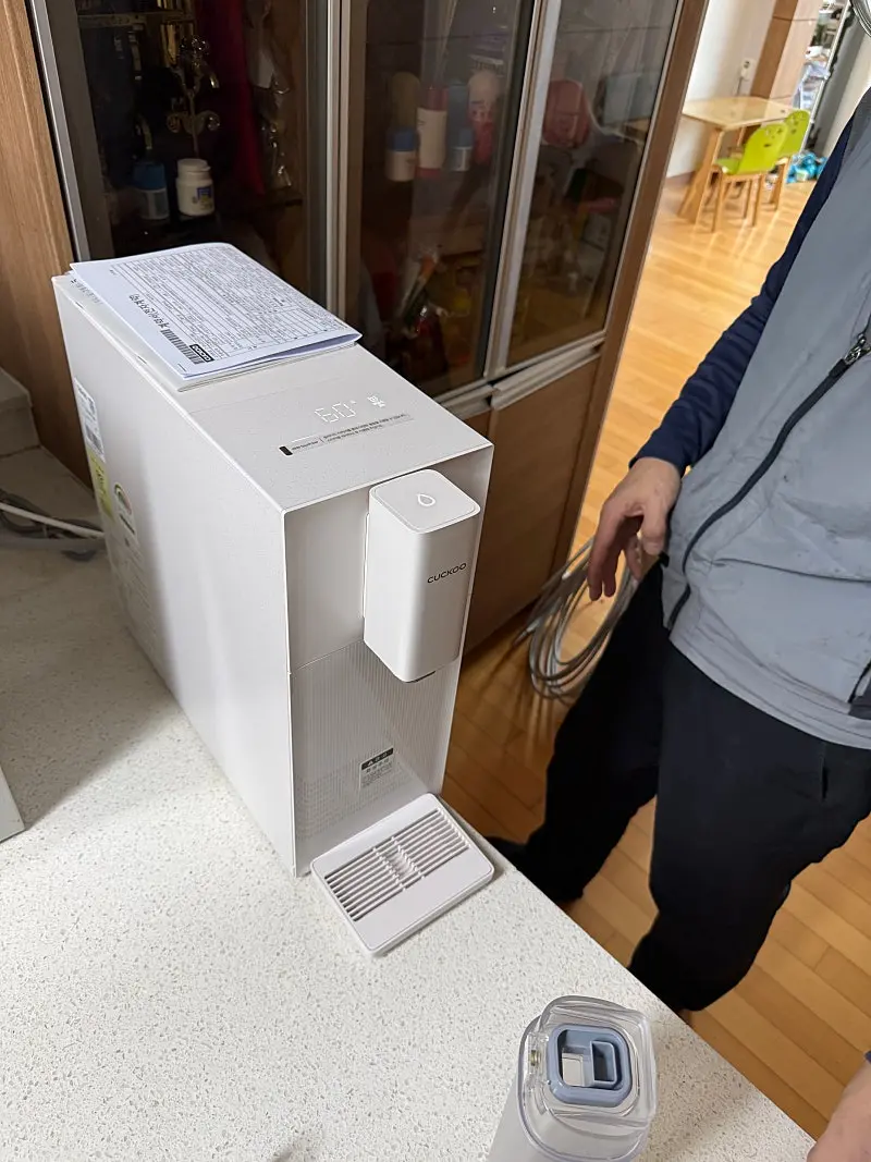 3. 정수기 렌탈 설치 과정은 어떠셨나요? 월요일에 신청하고 화요일 설치를 했는데 기사님이 오셨습니다. 약속된 시간에 정확히 맞춰 방문해 주셨고, 설치 과정에서 배관 연결 상태를 꼼꼼히 체크하며 세심하게 작업해 주시는 모습이 인상적이었습니다. 정수기는 누수를 가장 조심해야 하잖아요. 특히 필터 교체 주기와 자가 관리법까지 초보자도 이해하기 쉽게 친절히 설명해 주셔서 앞으로 안심하고 사용할 수 있을 것 같습니다.