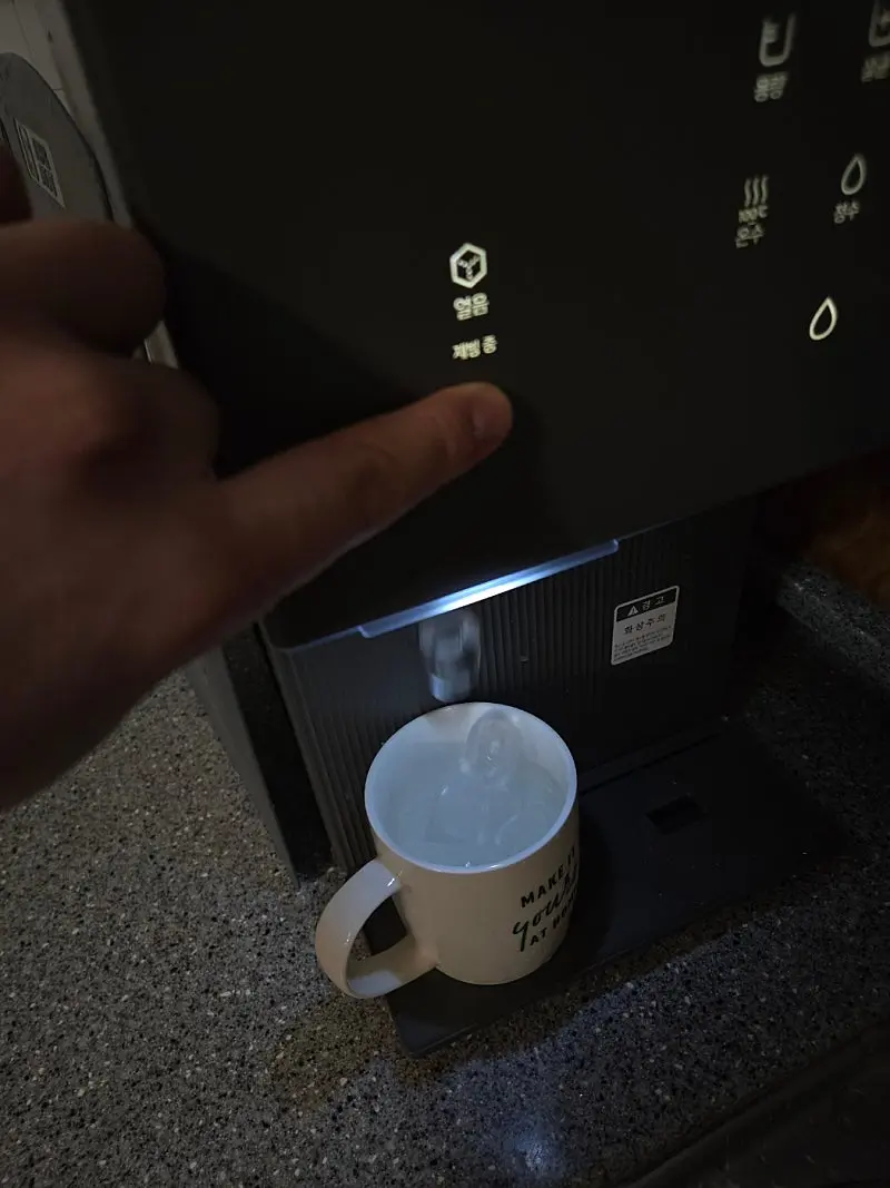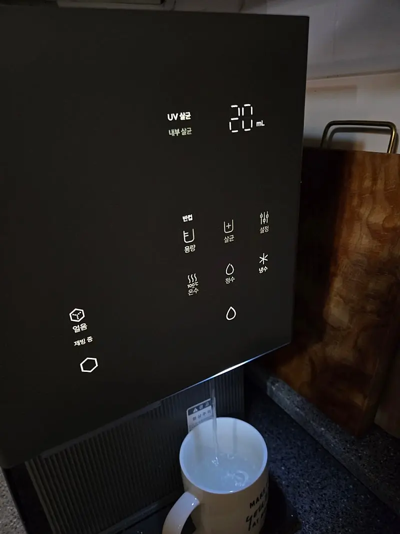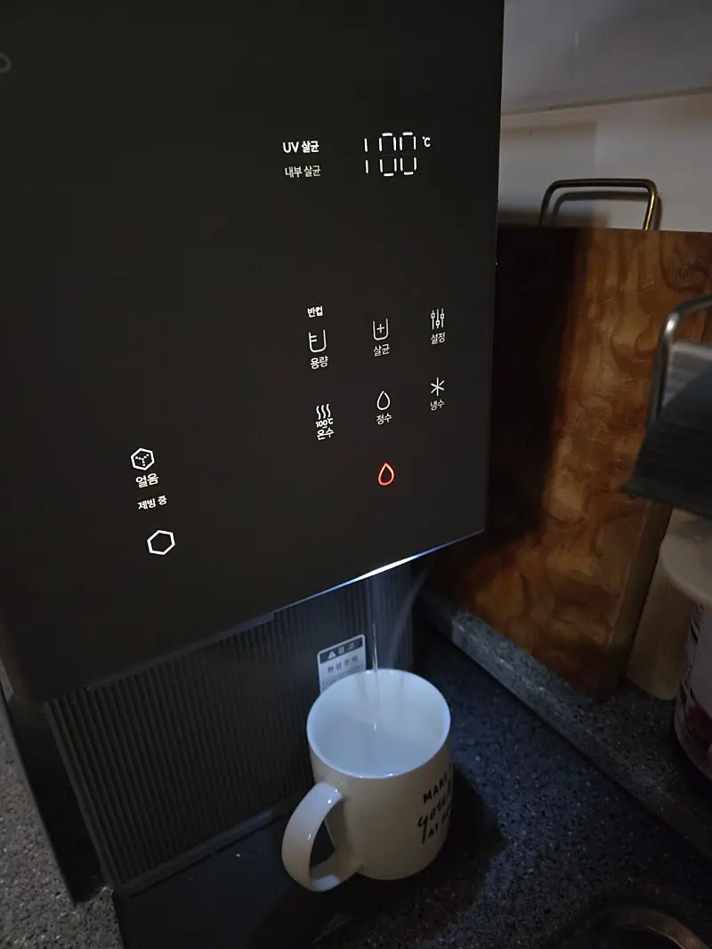 가장먼저 얼음과 100도씨 물이 나온다는것이 제일 좋았고, 그 다음은 옛날 정수기에는 없는 자동 살균기능이었습니다.