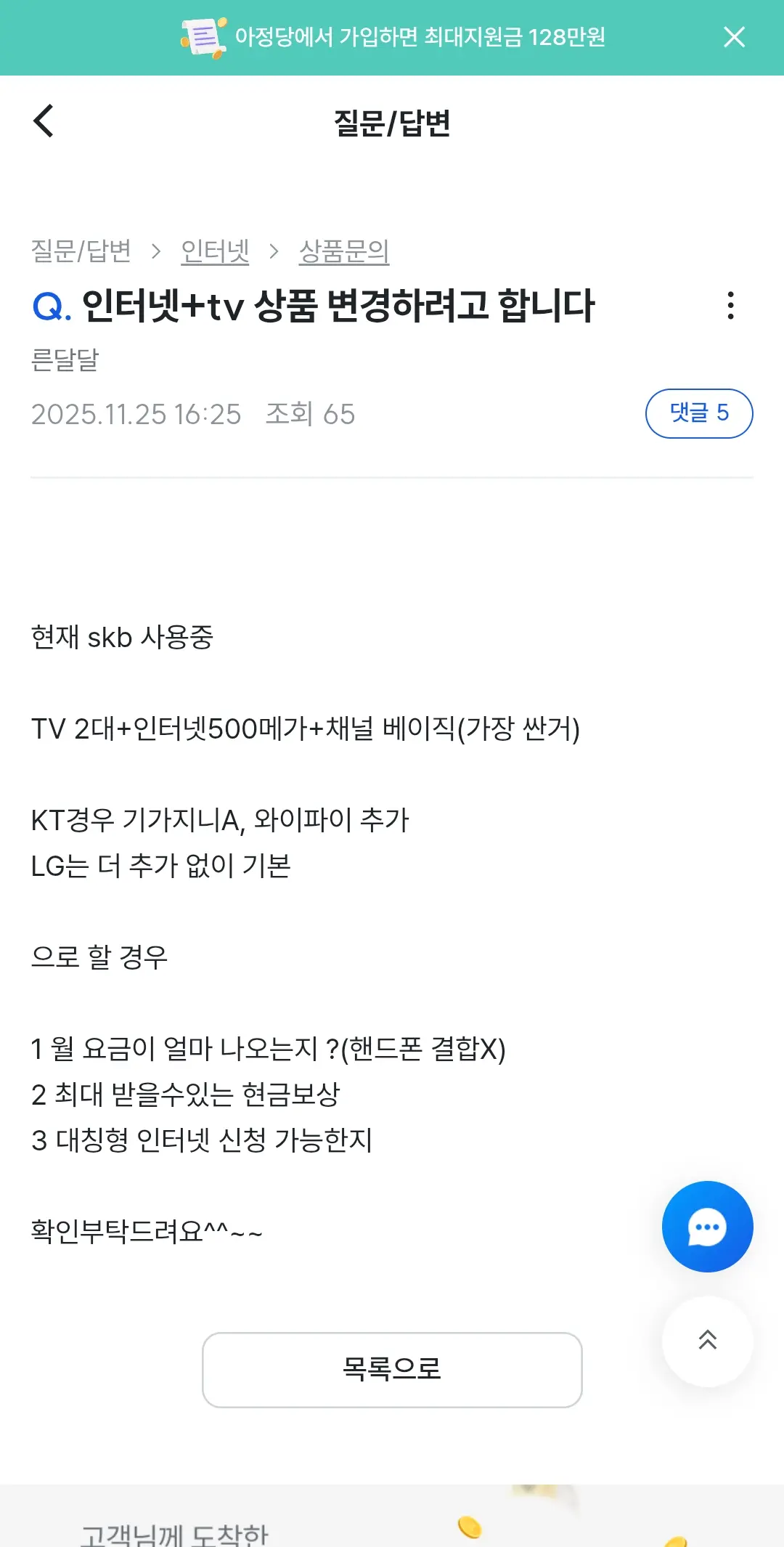 인천 KT 인터넷+TV 변경 현금지원 사은품 받은 내돈내산 아정당 설치 후기