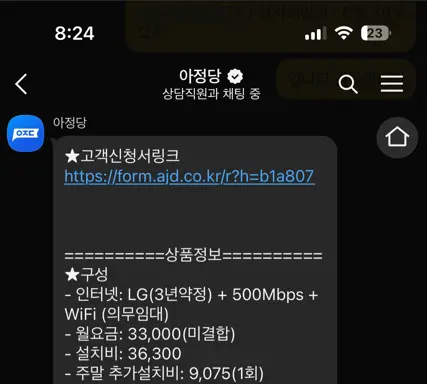 아정당 알게 되어서 너무 다행인 것 같습니다. 상담부터 설치, 사은품 지급까지 일사천리로 진행됩니다.