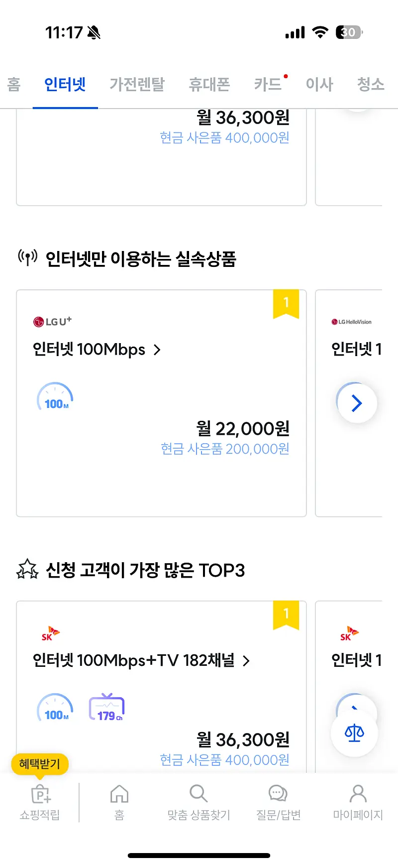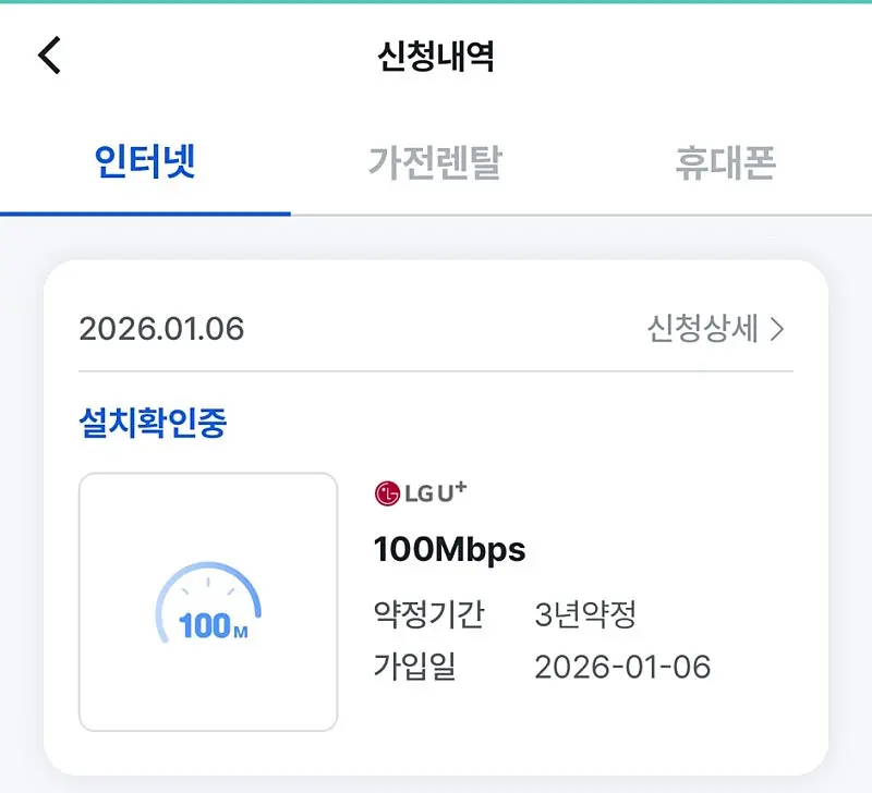 * 요금 상품 : LG U+ 인터넷 100Mbps