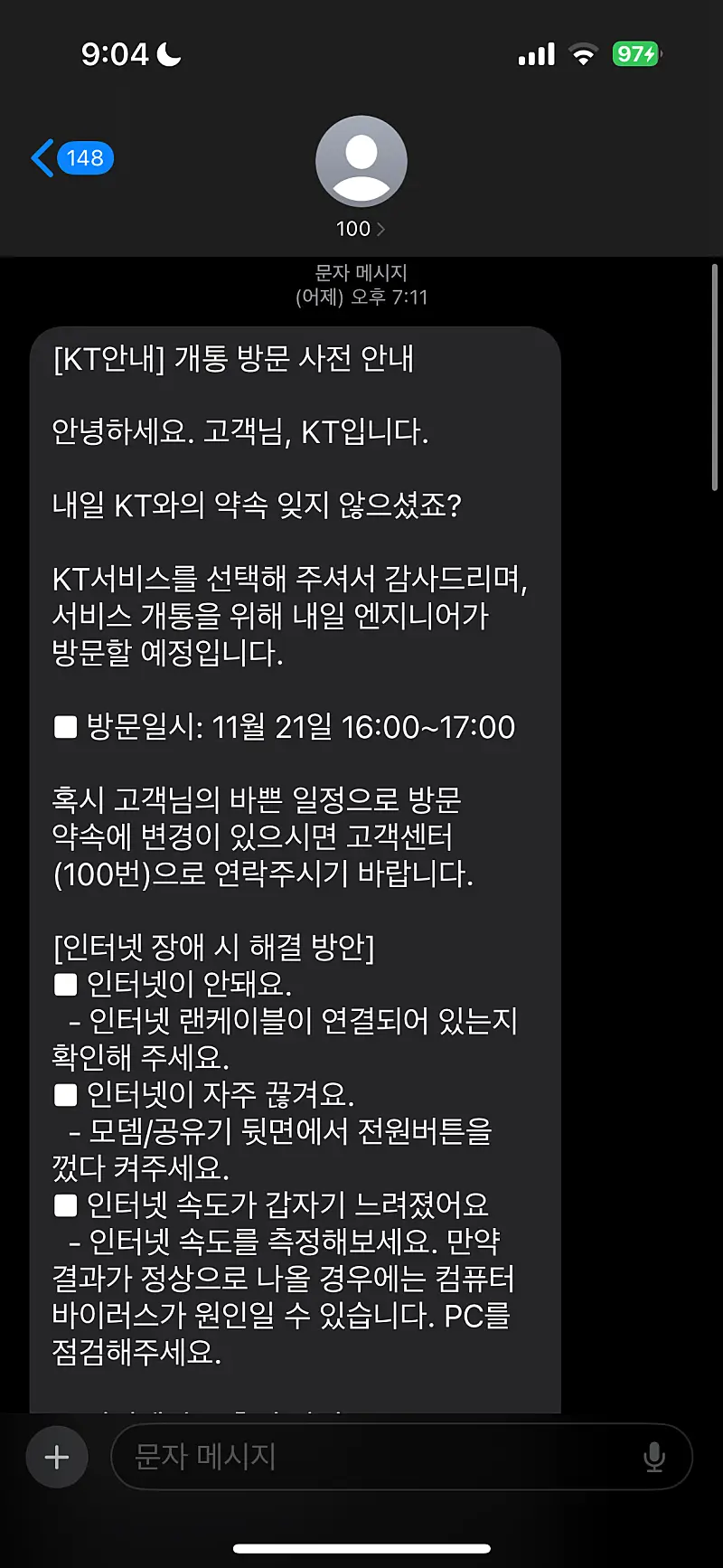 1. 설치 전날 확인 문자