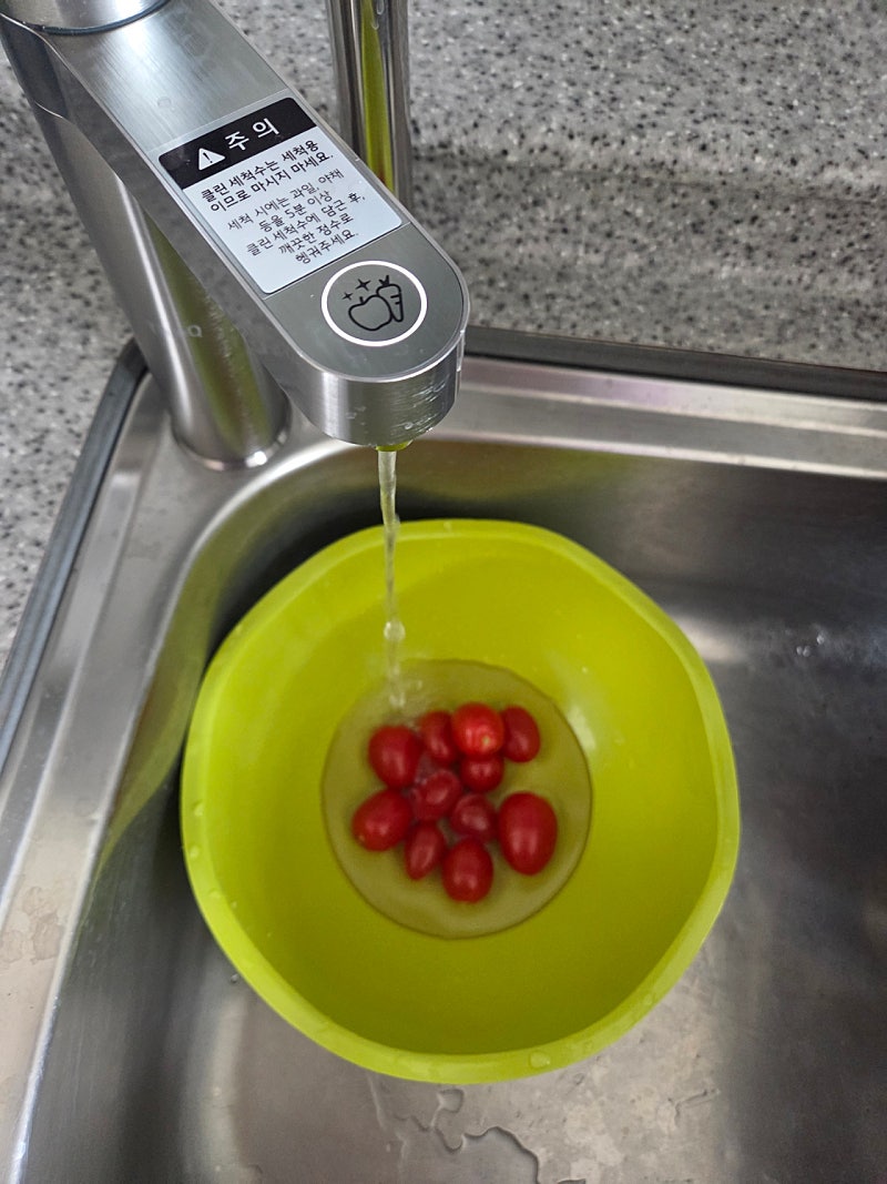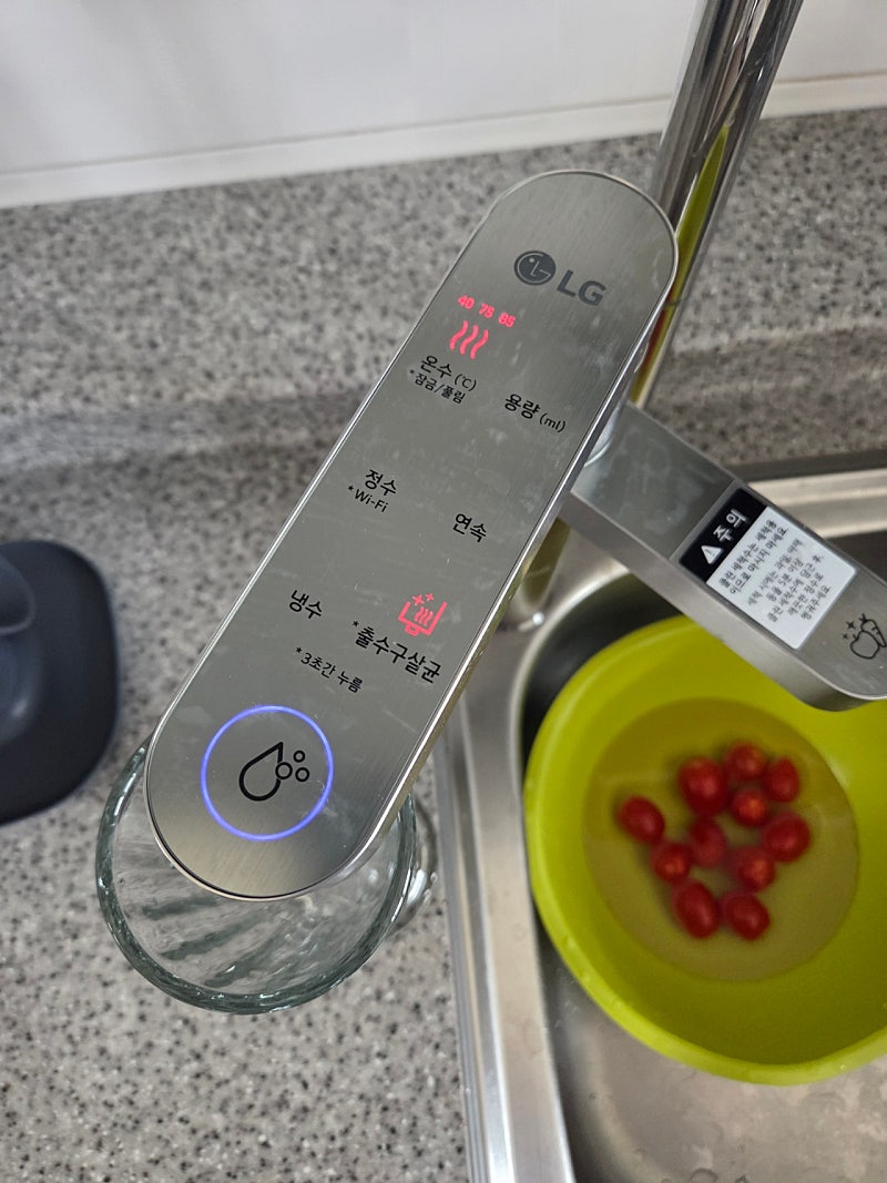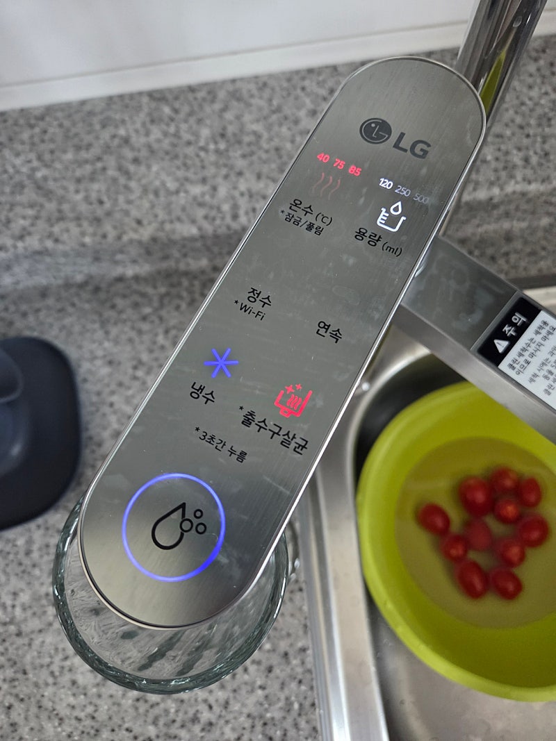 정수기 사용! 출수구살균도 되고 야채과일세척도 되어좋아요!!