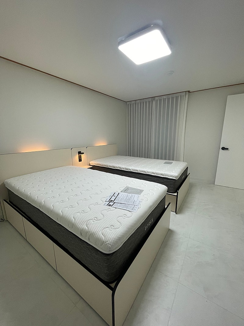 기사님께서 친절하게 커버비닐 벗겨주시고 매트리스 2개였는데 다 옮겨서 위치에 맞게 잘 옮겨주셨어요.
