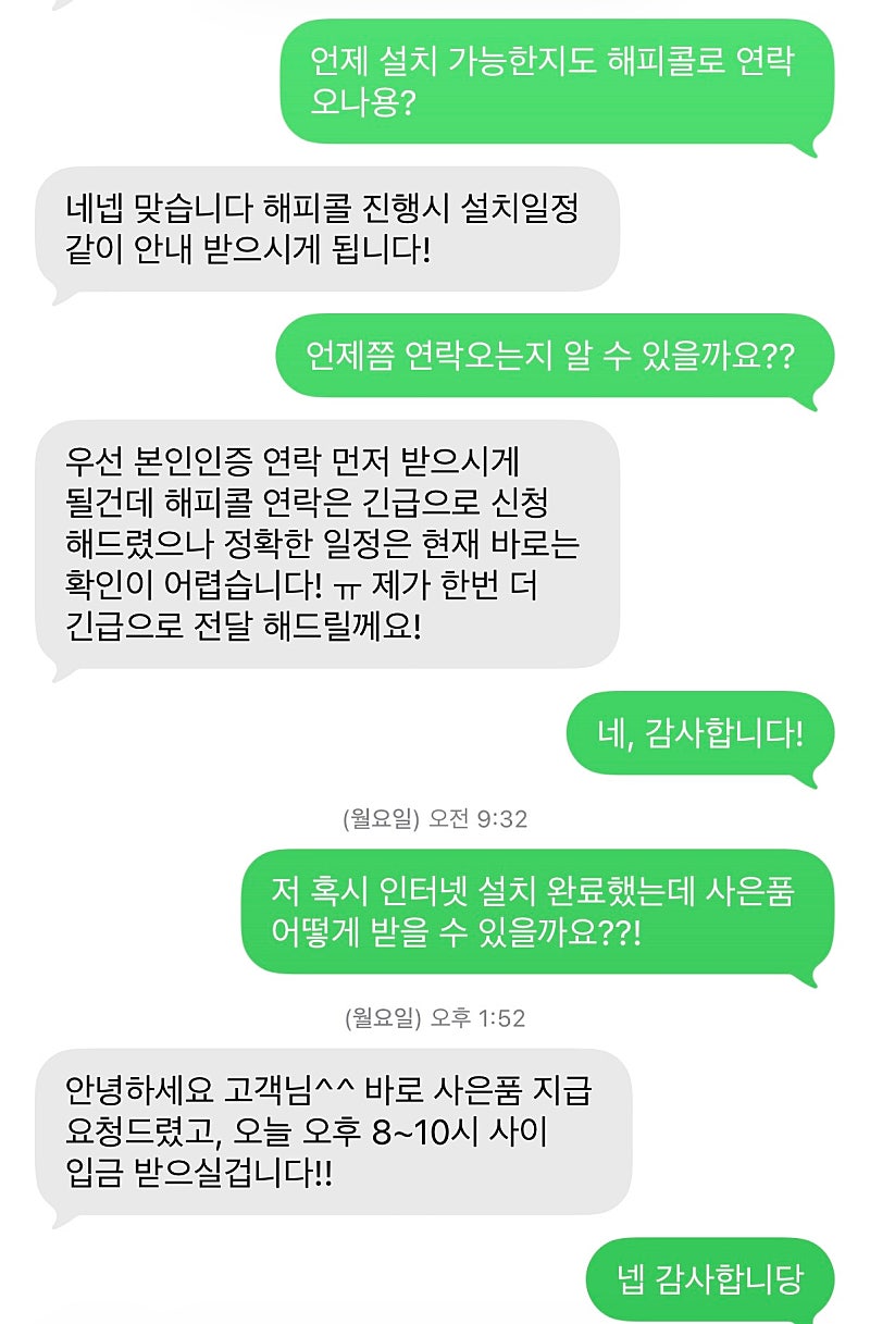 예약부터 설치까지 진행이 빨랐고, 현장에서도 오래 걸리지 않아 만족스러웠습니다. 설치 후 인터넷도 바로 정상 사용 가능했어요.