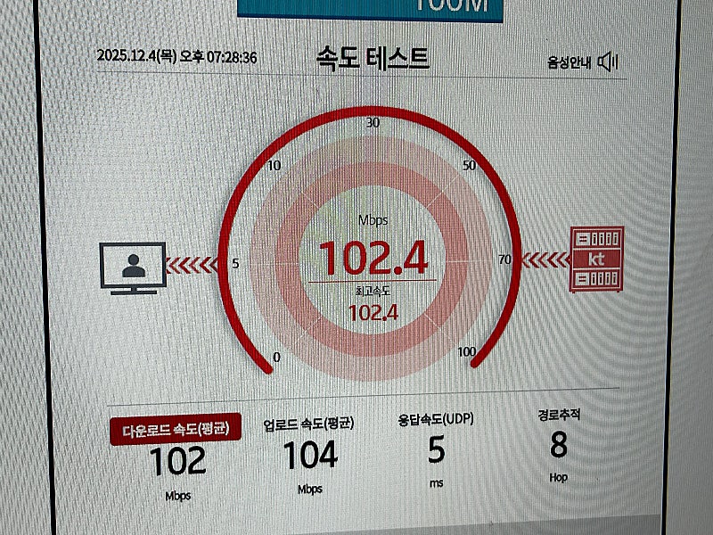 500M로 설치하고 싶었는데 설치지역이슈로 100M로 설치했는데 문제 없을거 같습니다