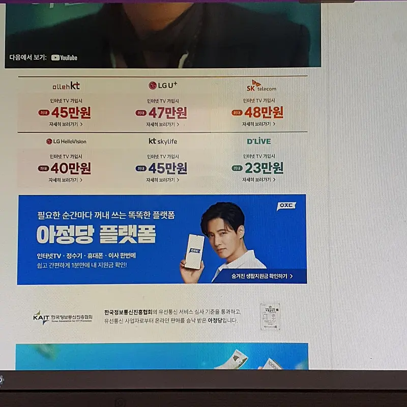 기존에 쓰던 인터넷이 약정이 끝난 채로 그냥 사용하고 있었는데 이사도 해야 하는 찰나에 광고를 통해 아정당을 계속 눈 여겨 보고 있다가 가입 후기들을 찾아보고, 상담을 받아보았는데 빠르고 친절하게 상담해주셔서 가입을 선택하게 되었습니다.