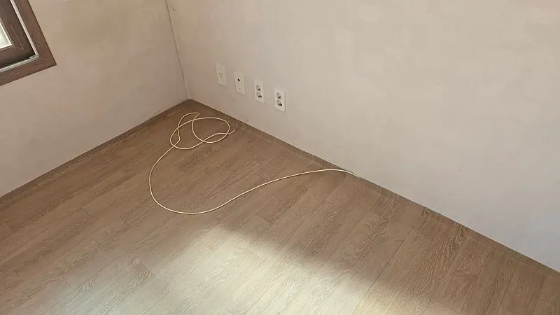 기사님께서 카타로 벽에 이쁘게 정리해주셨어요. 이전 세입자가 뜯어놓은 것도 깔끔하게 정리해주셨습니다!