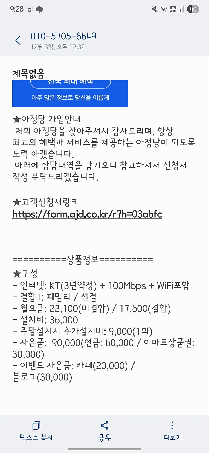 본가에서 KT 인터넷과 핸드폰 요금제를 사용 중이라 상담사님께 말씀드렸더니 최고의 조건을 찾아봐주셨습니다!