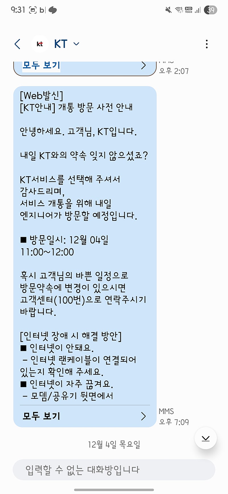 * 요금 상품 : KT 인터넷 슬림