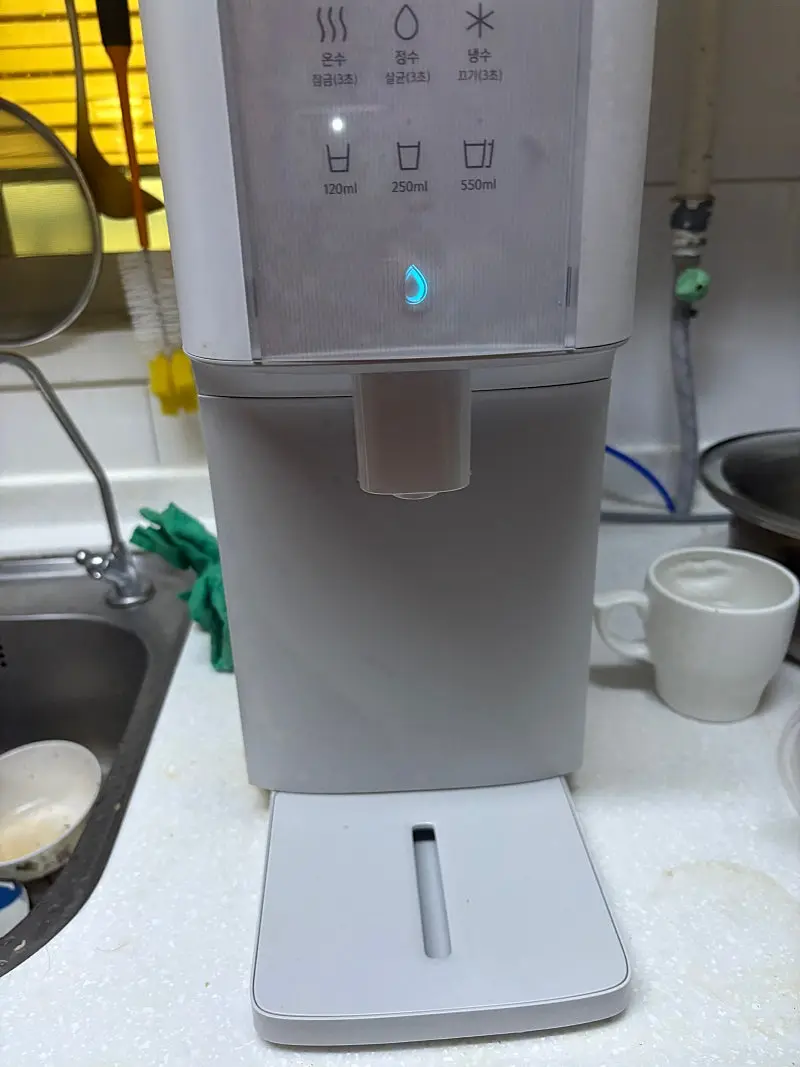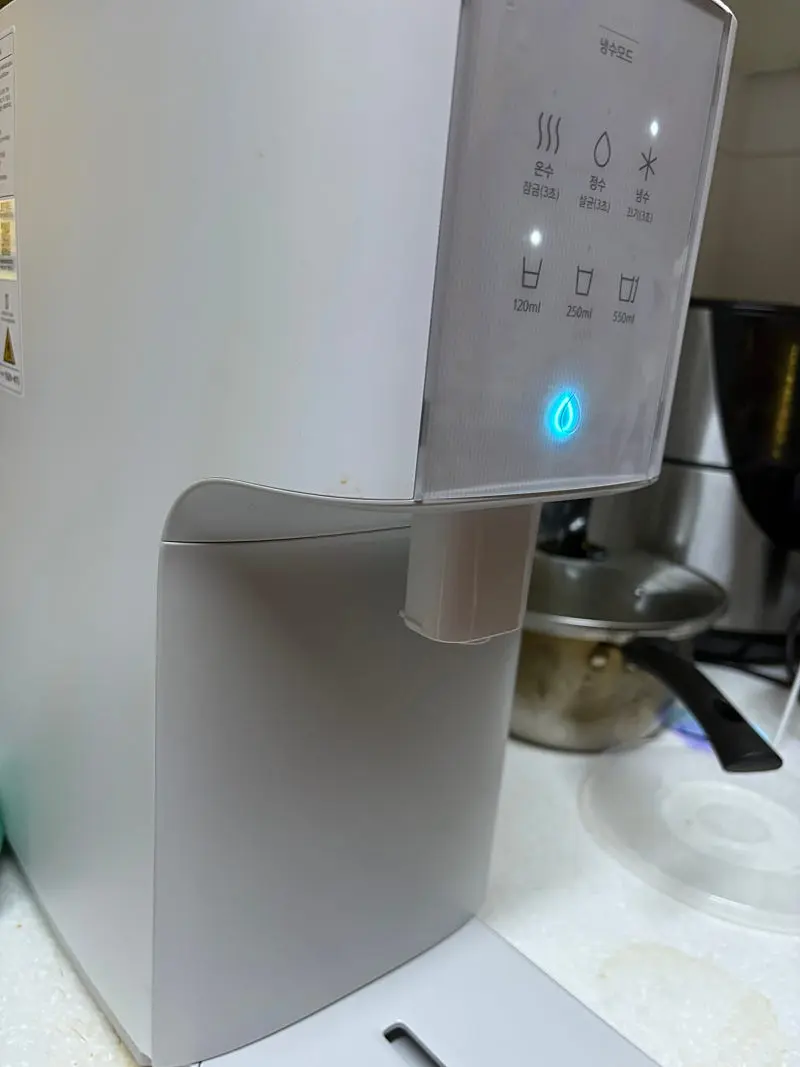 정수기가 깔끔하고 디자인이 너무 예뻐서 너무 좋았고 물맛도 좋고 아빠도 되게 좋다고 해요