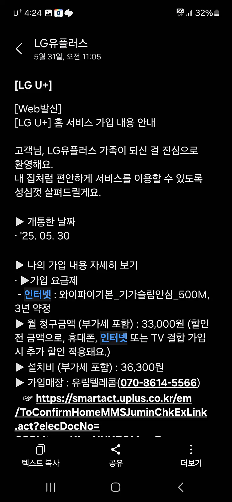 * 개통 일자 : ex) 2025년 5월 30일