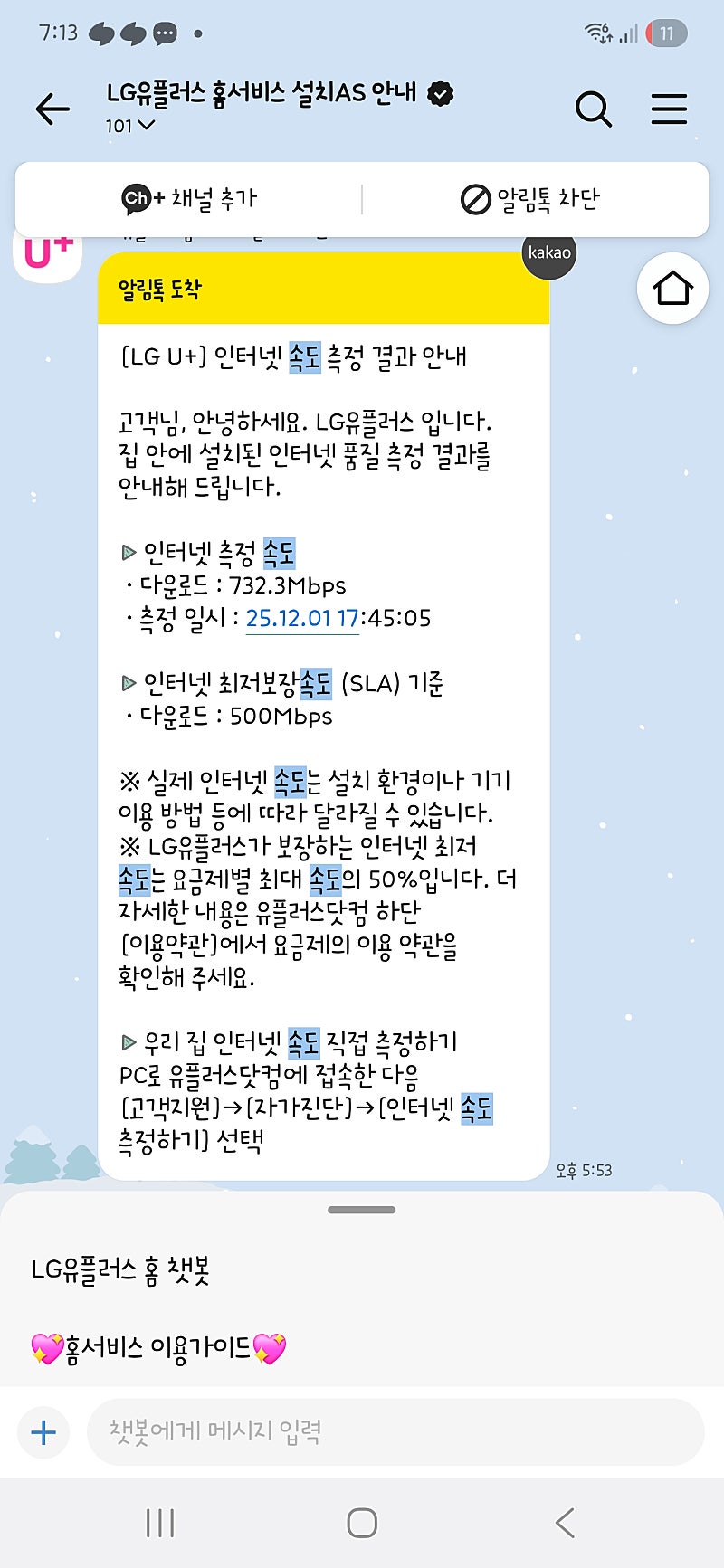 남편도 실제 본인이 인터넷 속도 측정해본결과 700메가 이상 나온다면서 좋아하네요^^