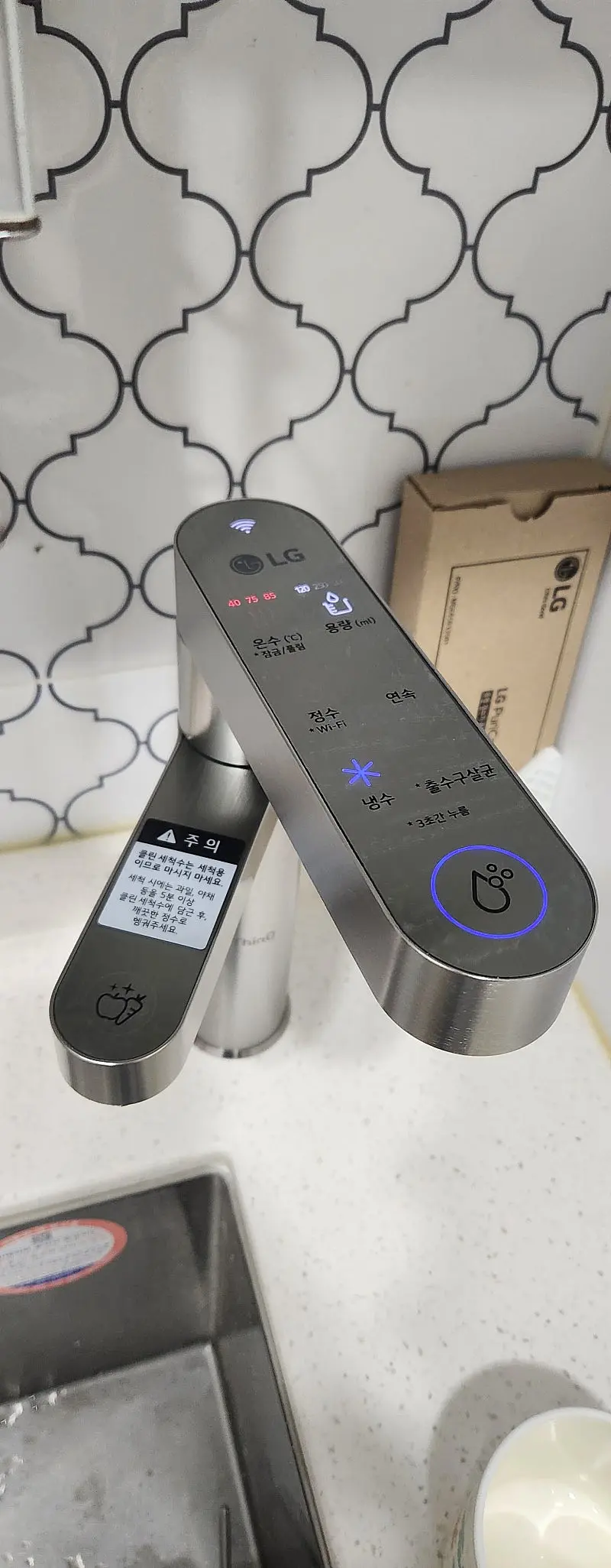 기존에 사용하던 정수기는 기본 정수기 였는데,새로운 타입의 신개념 정수기 이다 보니, 인테리어 추가한 기분도 들고,핸드폰 연동도 되고 신기합니다.벌써 집에 들렀다 간 지인들 이런정수기가 있었냐며,반응 난리 입니다.