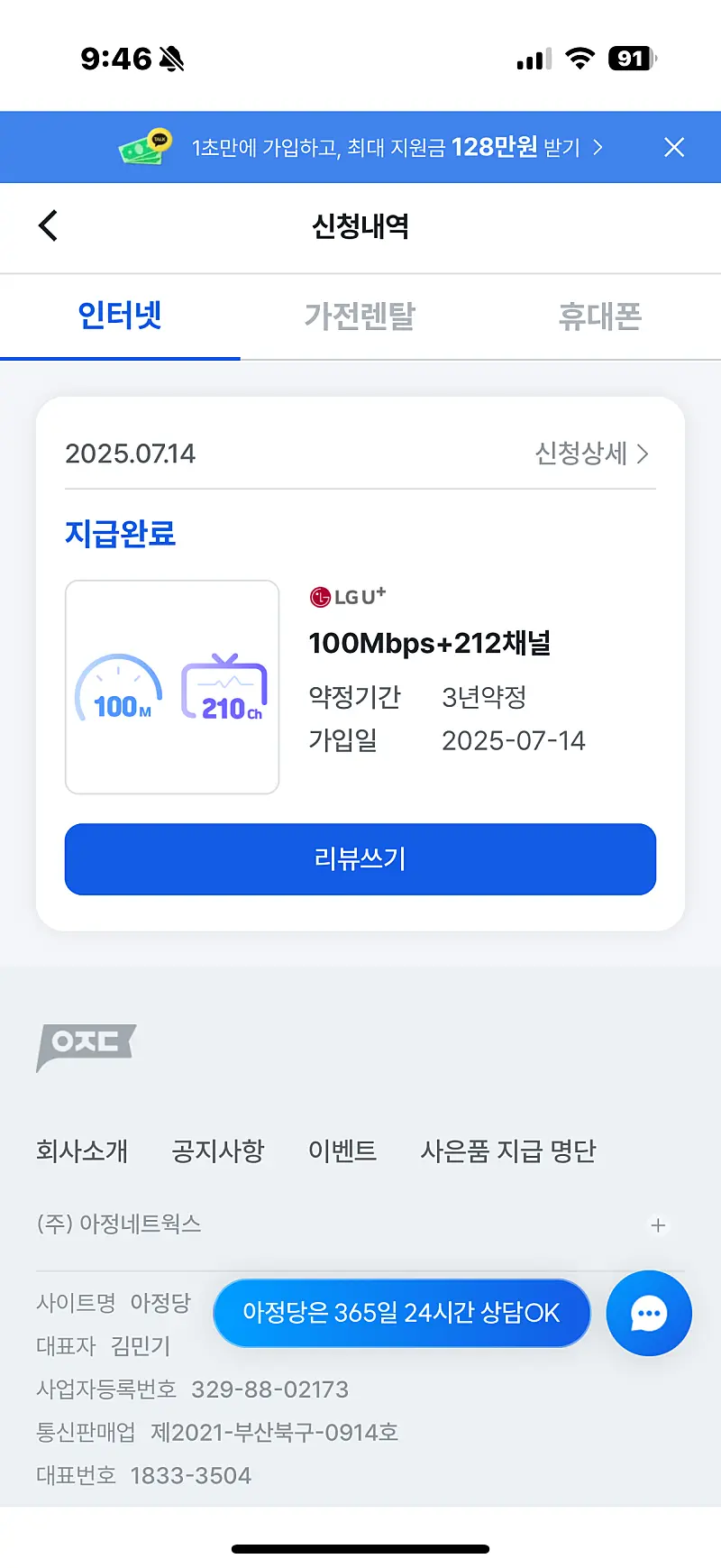역시나 인터넷도 상담도 정확하고 빠르게 진행되었고 지원금액도 제일 좋았어요!