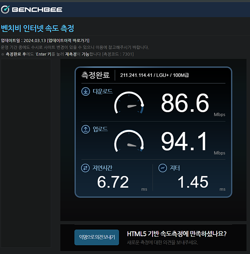 * 요금 상품 : LG U+인터넷 / WIFI기본 광랜안심