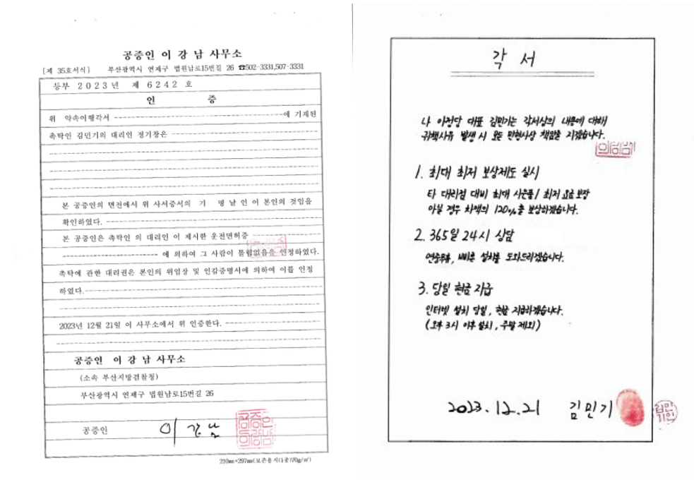 실제 법적 효력이 있는 각서까지 작성하여 고객님께 약속합니다.