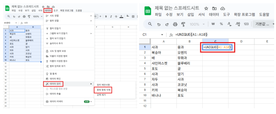 오늘은 구글시트 중복값을 해결하는 두 가지 방법을 살펴봤어요.