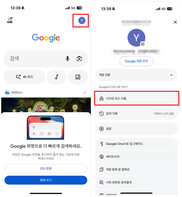 3. 모바일에서 구글 시크릿모드 켜기