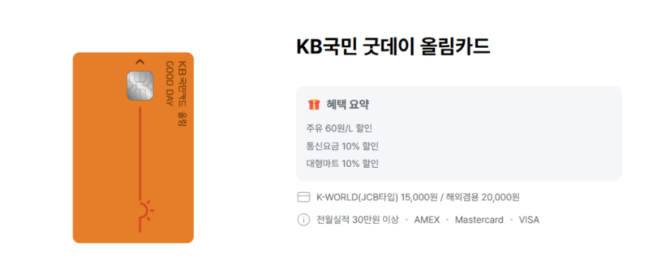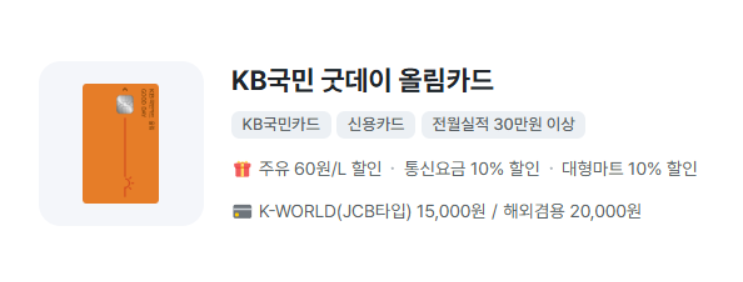 굿데이 올림카드 kb 국민카드 혜택 추천 이유 (학원비 주유 대형마트)