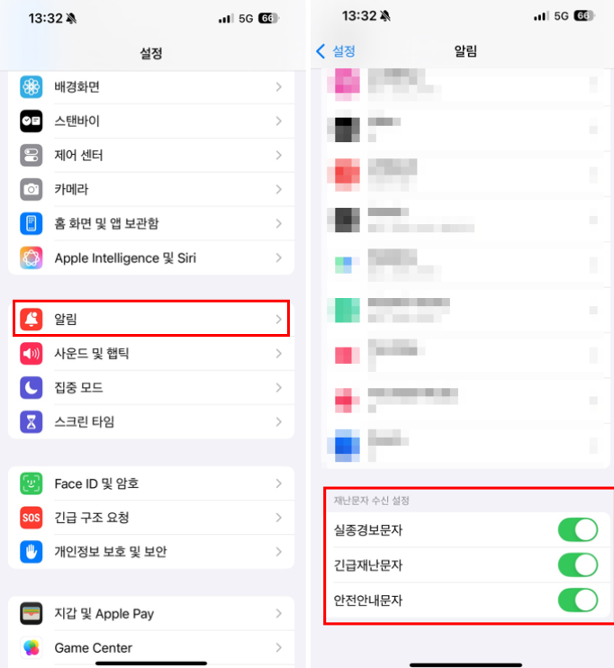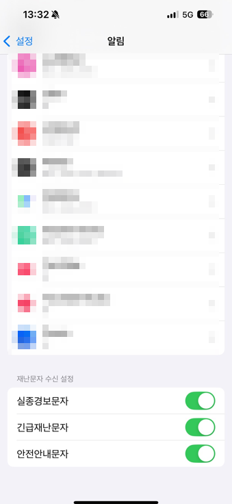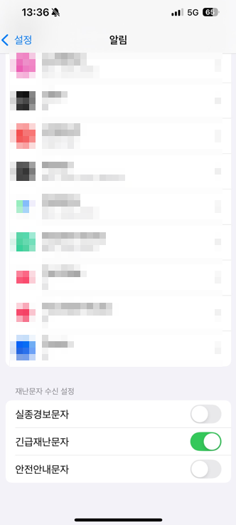‘긴급재난문자’를 끄면 일부 자연재해 알림이 차단됩니다.